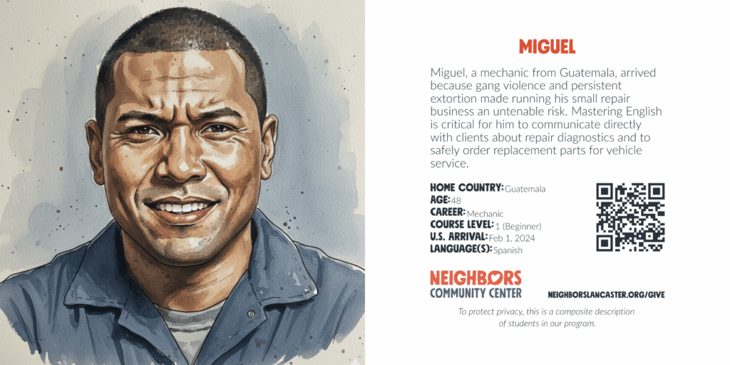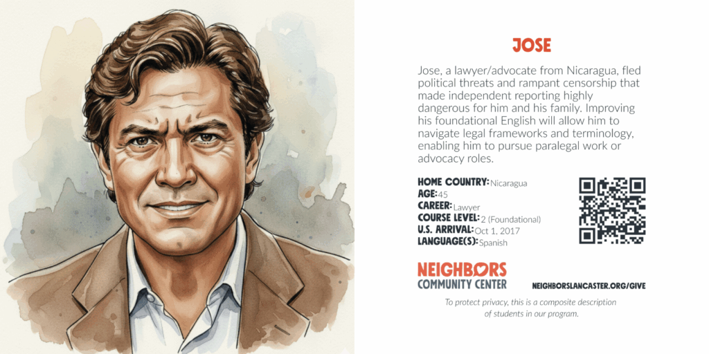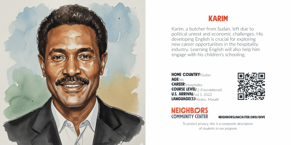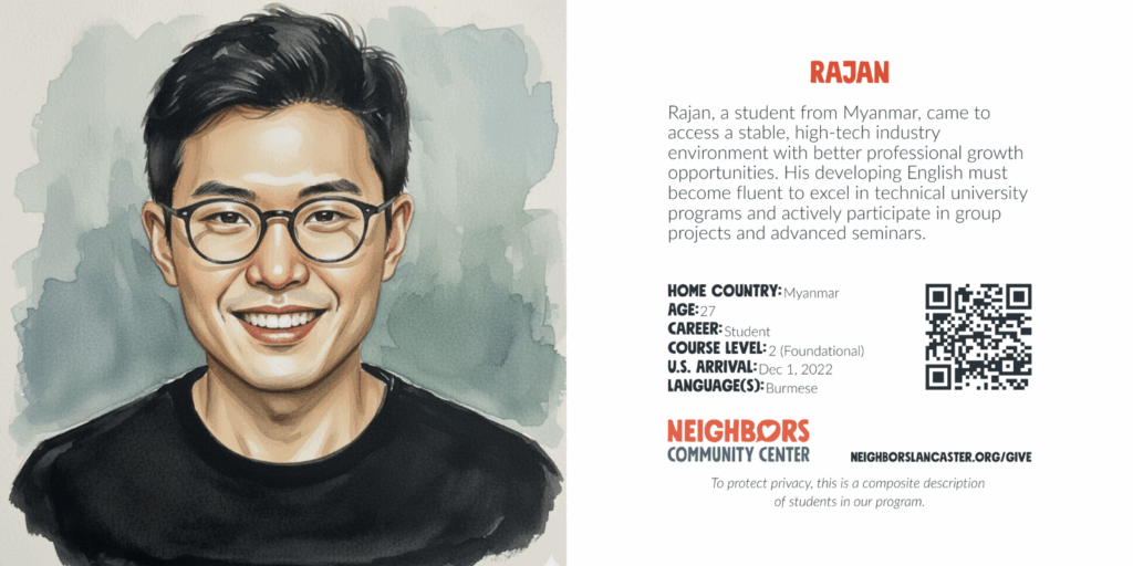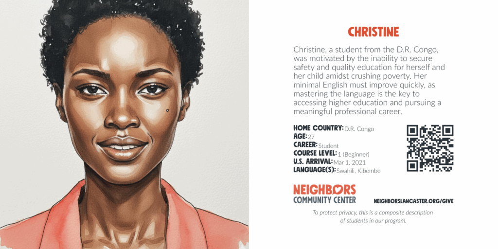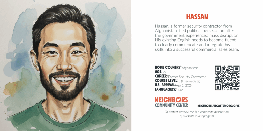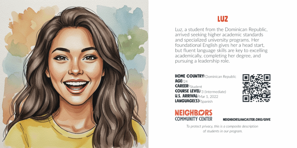 Account $0.00 0 Cart Sponsor an English language learner What your gift provides: Education and training Language and communication skills Community and friendship Scroll down for donation options. To protect privacy, these are composite descriptions of students in our program. Choose an optionSponsor an English language learner – Student Registration$25.00Sponsor an English language learner – Cost per Student per Month$50.00Sponsor an English language learner – Cost per Student per Semester$150.00Sponsor an English language learner – Cost per Student per Year$600.00Sponsor an English language learner – Cost per Student per 3 Years$1,800.00 Sponsorship Choose an optionStudent RegistrationCost per Student per MonthCost per Student per SemesterCost per Student per YearCost per Student per 3 YearsClear Sponsor an English language learner quantity Add to cart