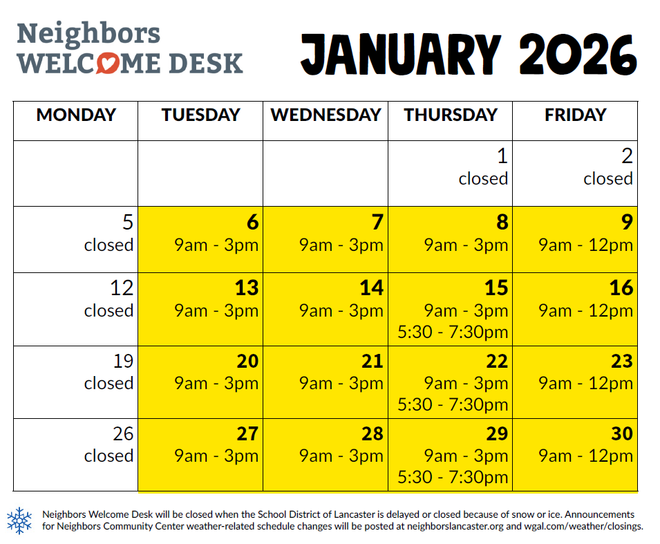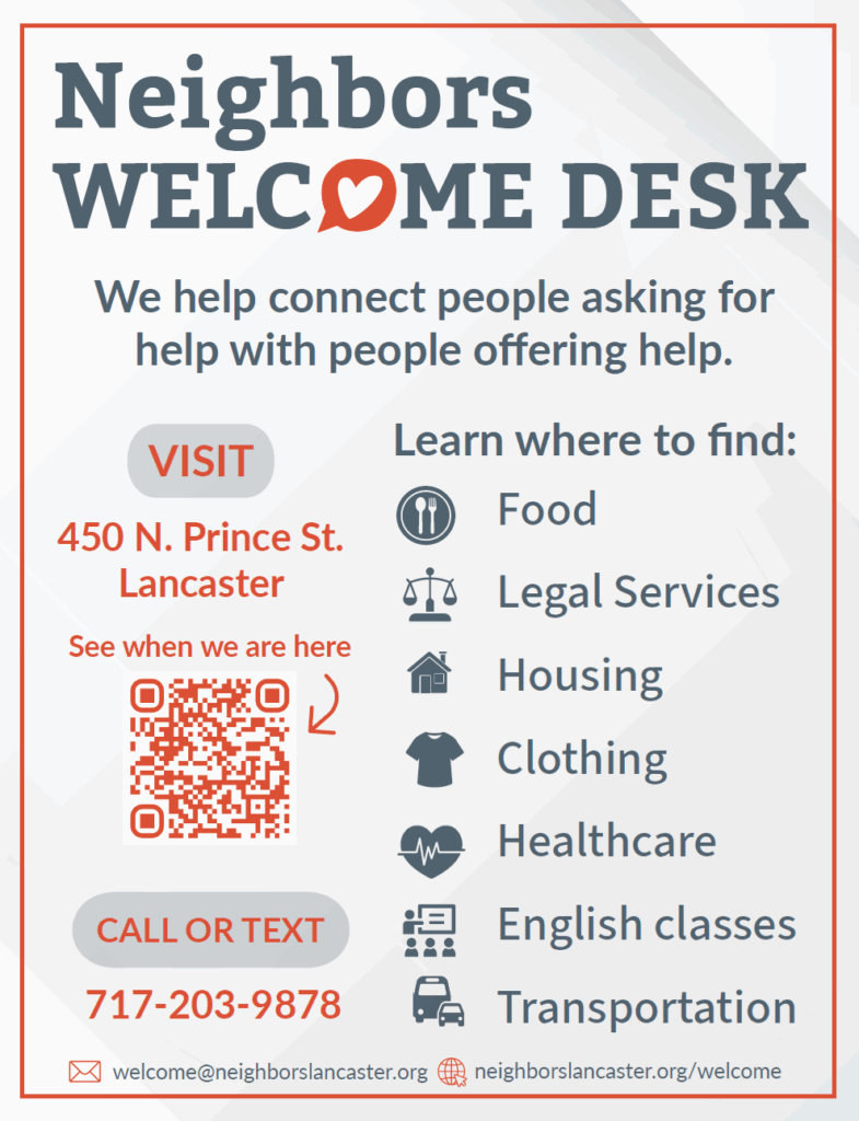 . You’ll see the desk to your left as soon as you walk through the front door.